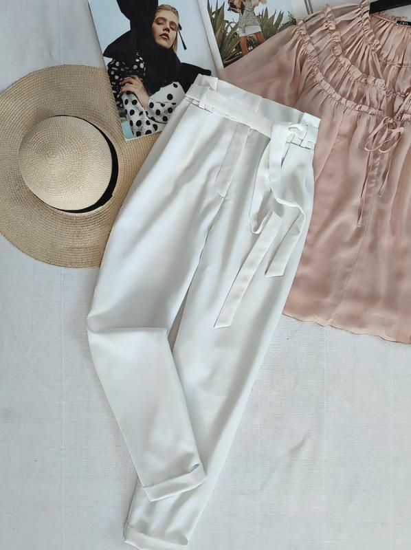 🌿білі брюки високої посадки від Primark з боковими кишенями, завужені до низу Розмір:10/М Заміри: ширина поясу 36 см, ПО бедер 53 см, довжина 92 см Склад: поліестр