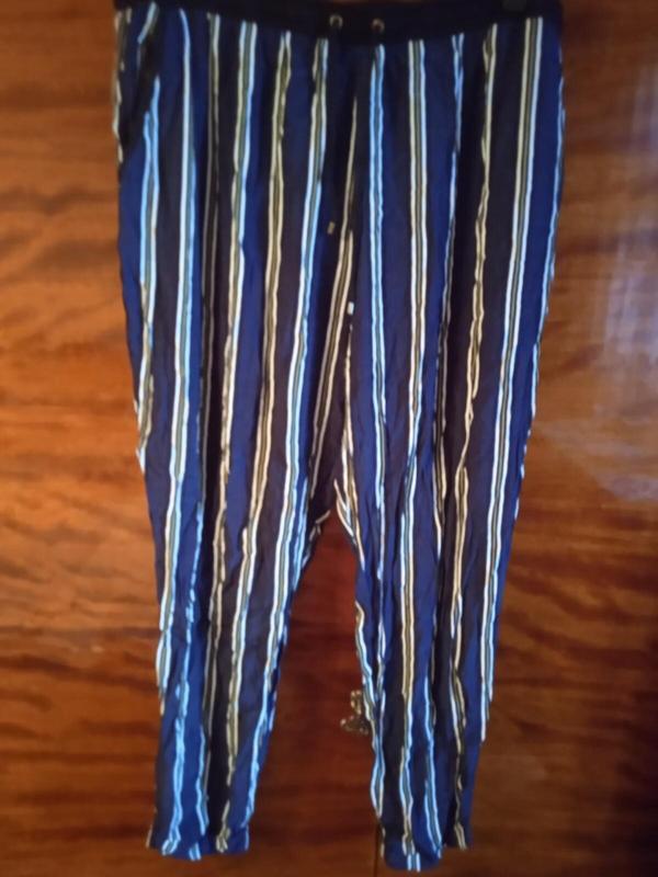 Летние брюки большого размера.Пот 47-65 см.Поб 70-80 см.Посадка-32 см.Длина-95 см.Полиэстер