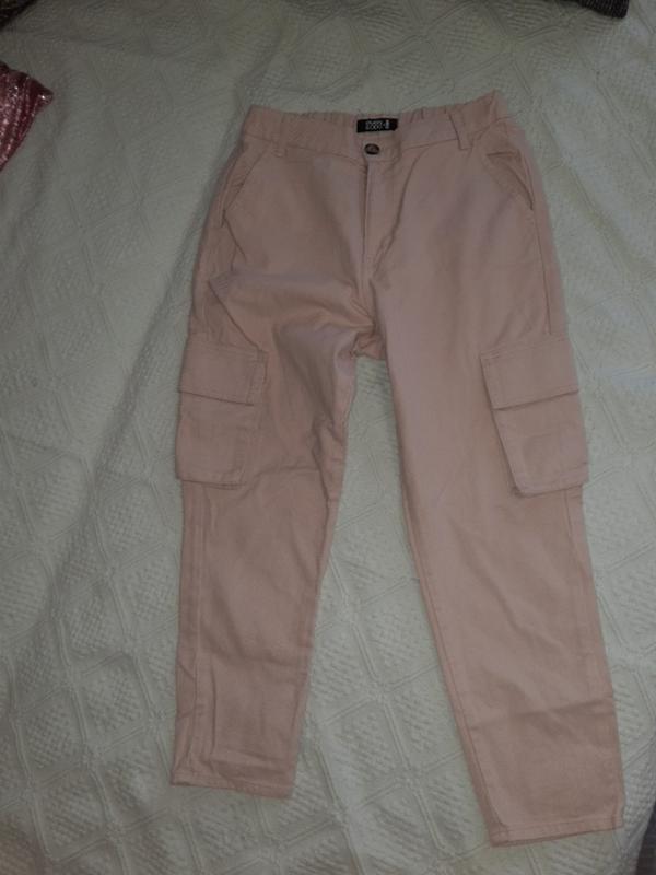 Бежевые брюки в стиле милитрен с большими карманами и высокой талией