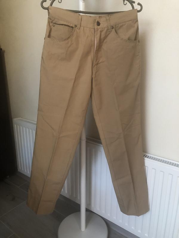 Пів обхват талії 36 см, пів обхват стегон 50 см, пів обхват штанки на рівні стегна 28 см, пів обхват штанки внизу 19 см, довжина по внутрішньому шву 75 см, довжина по зовнішньому шву 92 см + пояс 3,5 см; підігнуто 8 см (тобто можна зробити довшими при потребі).