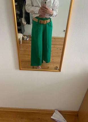 Шикарные и стильные брюки палаццо привезли из Италии, не подобрался размер. Ткань: натуральный лен, ремень в комплекте. Сочный зеленый цвет, очень стильно выглядят. Невесомые и удобные в жаркую погоду. Ремінь в комплекті.