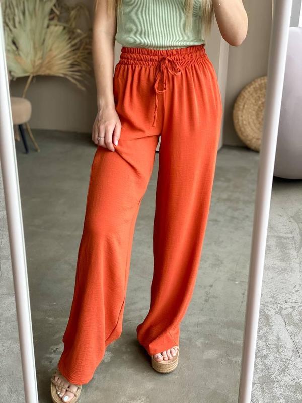 Брюки Арт : 0373 Цвет: терракот,розовый, салат Ткань: облегчений лён жатка( производство Турция) Размер: 42/44 Фото в живую. Брюки с высокой посадкой, талия на резинке и шнурке. В боковых швах функциональные карманы. Брючки свободного кроя,из легкой ткани, идеальный вариант для лета.