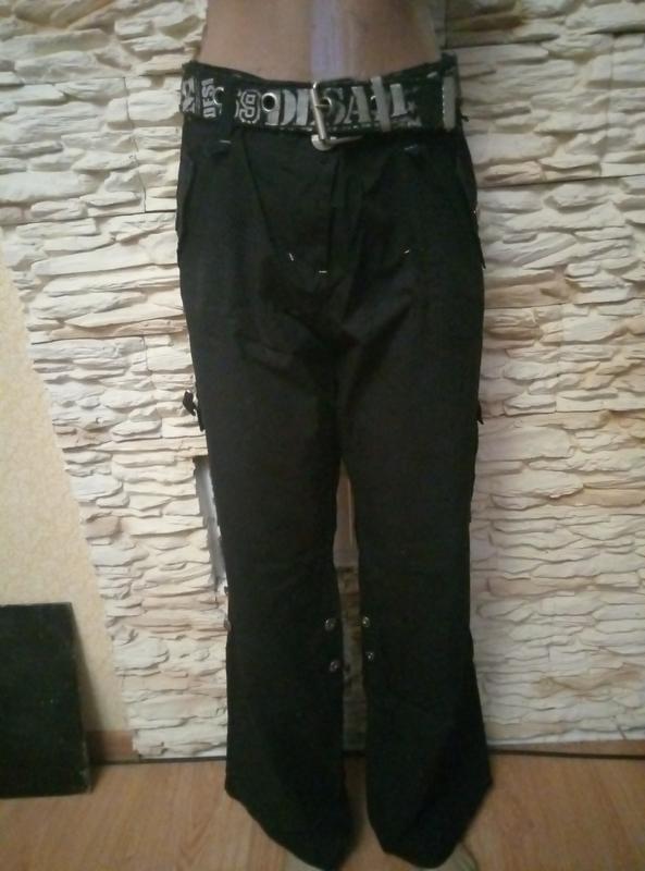 Штани з кишенями прямого силуету від стегна напівобхват талии49, бедир 65, висота посадки попереду 27, ззаду 37, довжина 105, ширина штанини 27