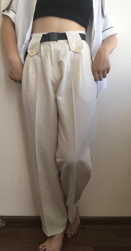 Красивые брюки из вискозы. Высокая посадка, немного зауженные книзу. Сделано во Франции. Размер м. Замеры: Пот 36см Пос 55см Глубина посадки сзади 43см, спереди- 33 Шаговый шов 72см Общая длина по боковому шву-102см