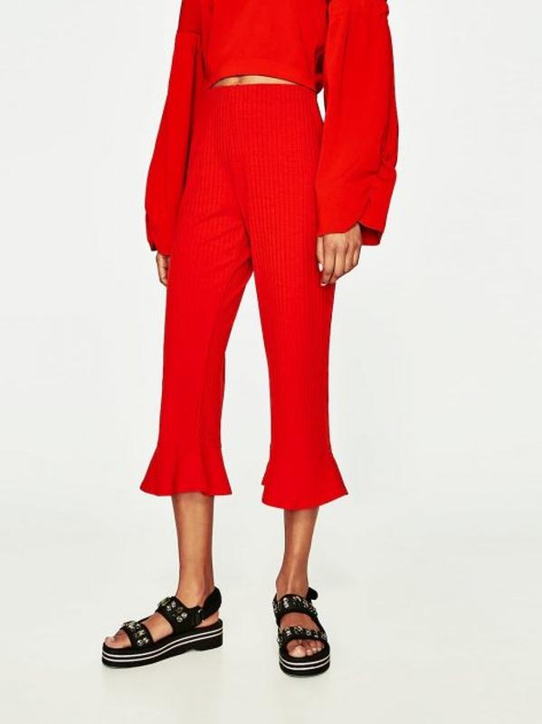 Укорочені брюки від Zara. Стан - нові. Розмір - S. Посадка - висока Стиль - повсякденний (casual) Колір - червоний Країна виробник - Марокко