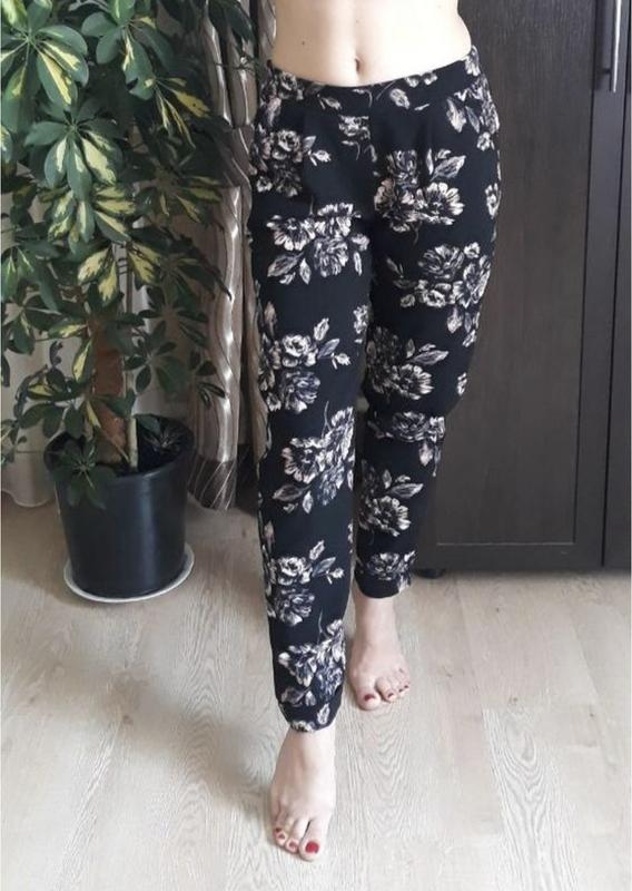 Стильні штани в квітковий принт Довжина по зовнішньому шву 96 см Довжина по внутрішньому 71 см Півобєм талії 33 см