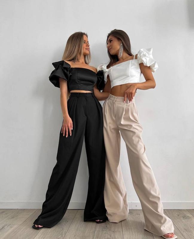 🔥NEW🔥 брюки ▪️мод 190 ▪️ткань : креп костюмка ▪️цвета : чёрный , бежевый ▪️SM ; ML ▪️цена 570 грн брюки палаццо 😍 Брюки на высокой посадке , клёш от бедра ; выполнены из качественной ткани ; Смотрятся дорого и стильно 😍 Длина брюк 110 см Размеры SM | ML Талия : 60-66см | 69-75см Бёдра : 88-94 см | 95-99 см