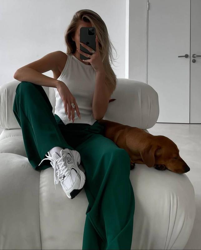 Арт 844-190 🔝Брюки ✅Тканина : креп костюмка ✅Колір : зелений , чорний , бежевий ➖Брюки палаццо ➖Брюки з високою посадкою , кльош від бедра ; виготовлені з якісної тканини; ➖Виглядають дорого та стильно ✅Довжина брюк 110 см ✅Розмір SM | ML ➖Талія : 60-66см | 69-75см ➖Бедра : 88-94 см | 95-99 см ✔Ціна 450грн