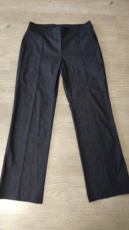 Стильные брюки, прямые , коттон, стрейчевые. Красиво смотрятся по фигуре. Ткань тонкая ,эластичная, качественная размер указан 12 ,подойдёт на М. ПОТ-40-41 ПОБ-50-52 Посадка-29 Длинна-99