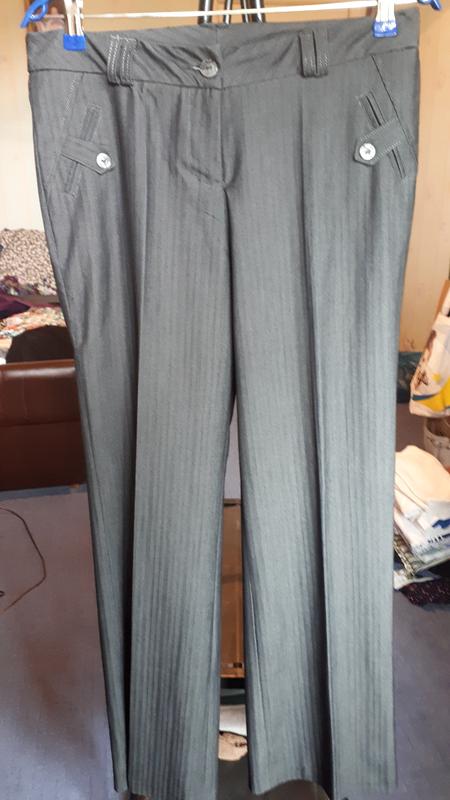 Класична брюки. Прямого крою. Для офісу та прогулок. Цікаве оформлення карманів. В тонку віру смужку. Перешивала на свої параметри, тому є сліди перешиву. Заміри: довжина-107 пот-40 по- 50 брючина 26 глибина спереду -27 позаду-32