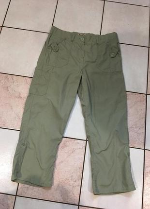 Брюки отличного качества красивый крой цвет оливковый , с карманчиками , по бокам резиночки, длина регулируется , пояс 44 тянется поб 53 шаг 62 длина 88 , ткань натуральная котон