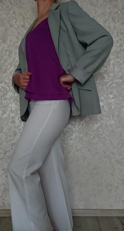 Білі літні брюки, клешать від бедра. Розмір 46 48. Низька посадка. Широкий пояс застібається на 2 плоскі гачки і молнію. Заміри Довжина 100 Пот 44 Поб 54