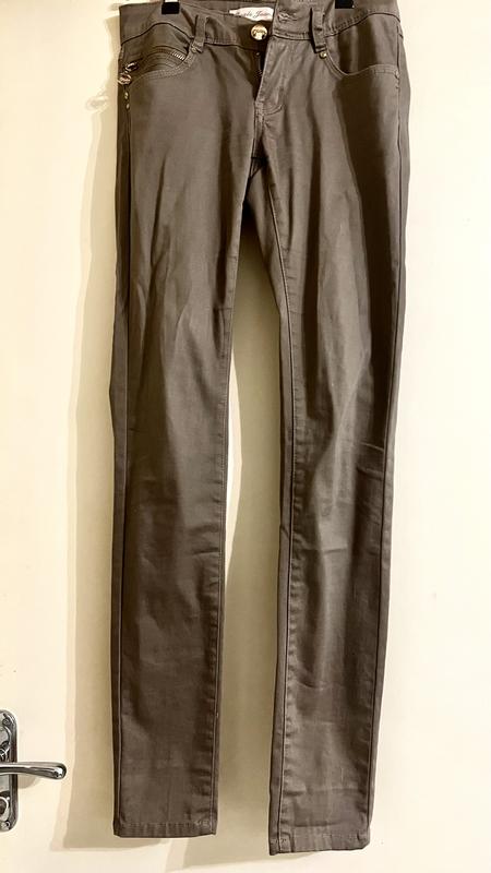 Джинсы коричневого цвета. Состав: 98% котон, 2% эластан. Пролет с размером. ХС размер, 34. ПОТ 31см. ПОБ 42,5 см, длина 100см, по внутреннему шву- 77см.