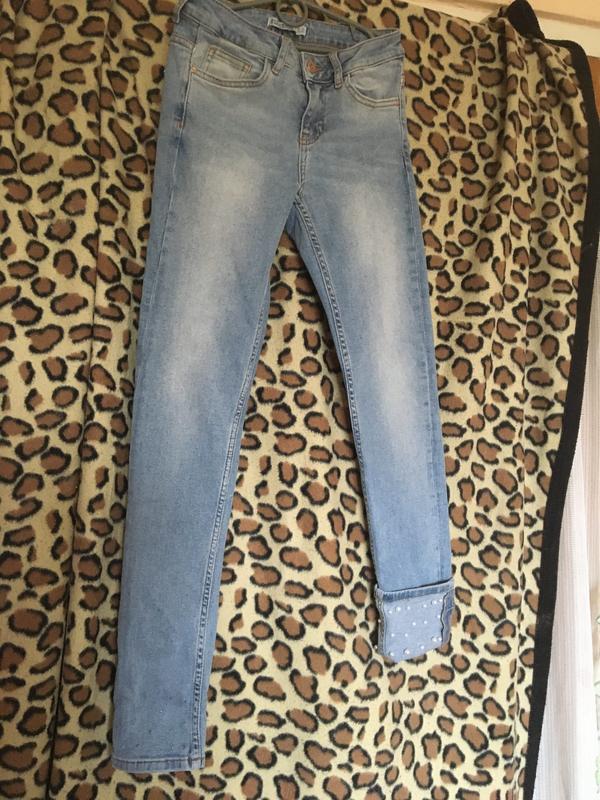 Шикарные,стильные джинсы голубого цвета-фирменные,натуральные,впереди три кармана,сзади два кармана,на поясе сзади фирменная лейба,объем в поясе-71см.,очень хорошо тянется,посадка впереди-19см.,сзади-34см.,пошаговый шов-77см.,длина-100см.,низ можно подворачивать-10см.прошито жемчугом,