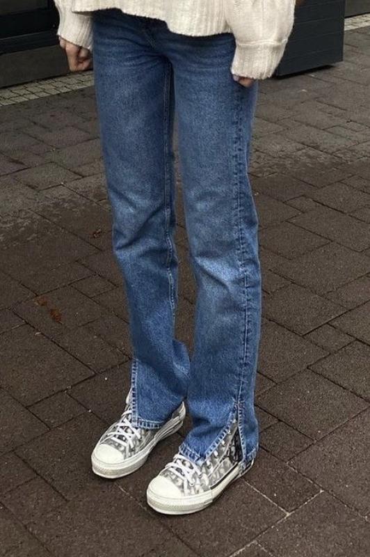 Класні прямі джинси с розрізами внизу з щільного матеріалу. Розмір S