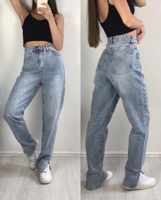 Актуальные джинсы с разрезами, цвет бомба, по бирке хс, но смотрите замеры, лучше на рост от 1,70, возвышенность посадка, длина 110, талия 66-68, бедра 92-94