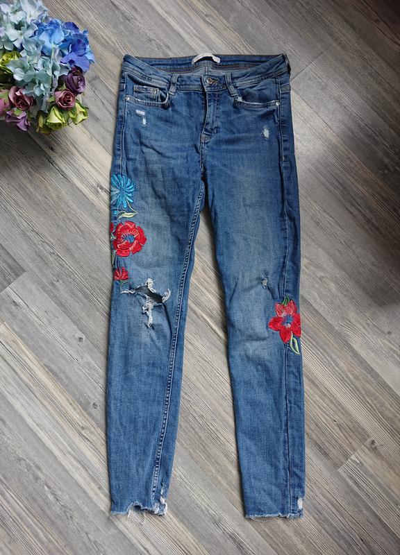 Женские джинсы с вышивкой и потертостями джинс тянется фасон скинни Размер 26 наш 40/42 (s) Замеры Длина 92 Шаг 69 Пот 35/37 Поб 40/47
