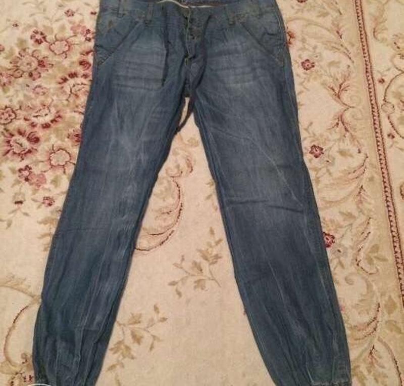 Джинсы куплены в магазине New Look. Размер 36-38. Абсолютно новые. Фасон - галифе. Широкие, а снизу резинка