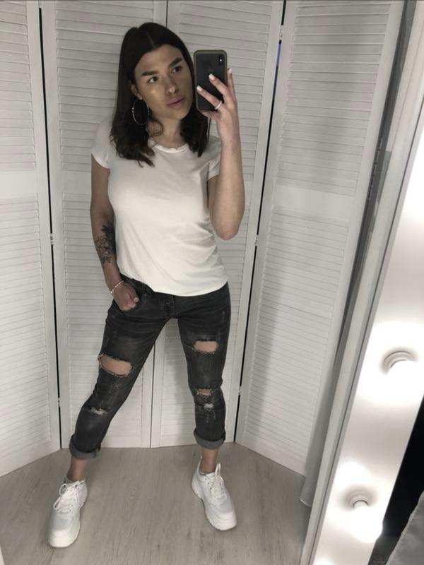 Рваные джинсы, черно-серого цвета. Подойдет на 44 размер (М). Ширина по талії 38 см. Бедра 48 см.