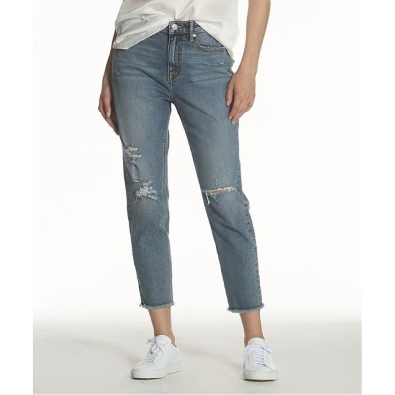 средняя посадка фасон -tapered (зауженные к низу) boyfriend необработанный низ не плотная ткань Размер: W26 L26 - ПОТ - 37 см, ПОС - 46 см, длина по шаговому шву - 64 см, длина по внешнему шву - 92 см Состав: 94% хлопок, 5% полиэстер, 1% спандекс