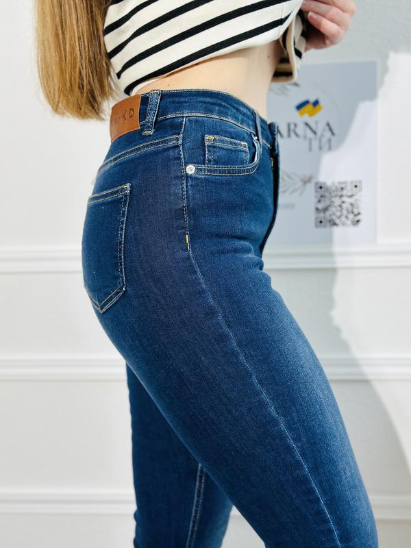 Синие skinny, необработанный край внизу, высокая посадка, размер 36(S)