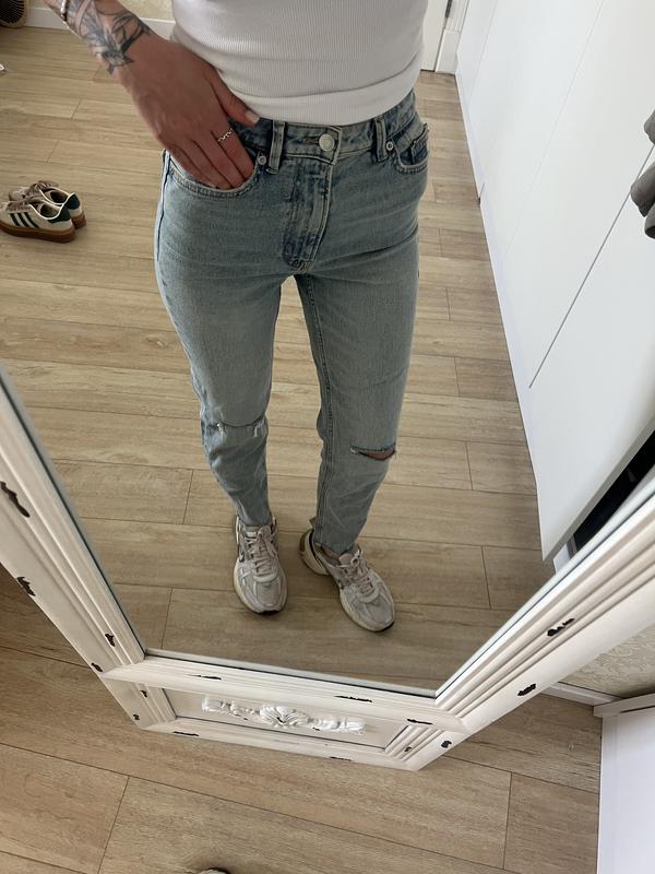 Нові джинси від Pull&Bear mom З вирізами на колінцях Низ джинс обрізан (від виробника) Вдягнулись один раз Розмір 32, XS Ціна 500 грн