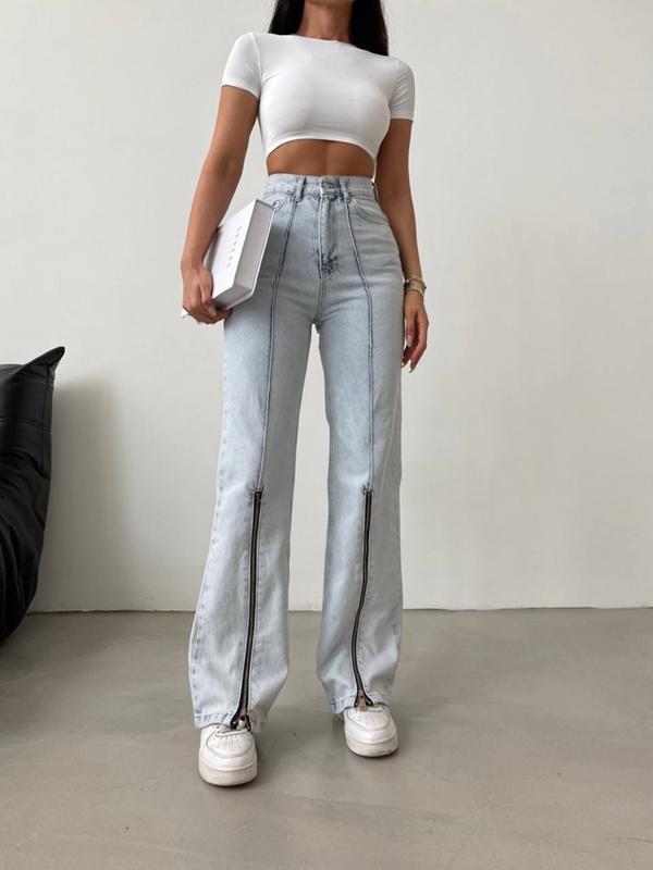 Стильные джинсы с строчкой и молнией в светло-голубом цвете