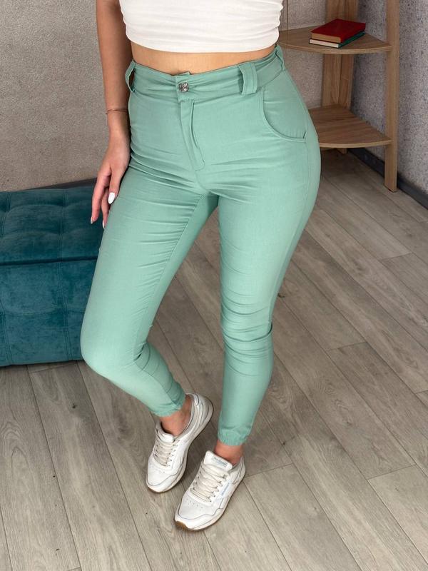 Брюки-джоггеры выполнены из эластичной ткани летний бенгалин диагональ пояс сзади на резинке для регулировки на ваш объем талии, манжеты внизу на резинке, боковые и задние карманчики рабочие Идеальная высокая посадка Цвет: желтый все размеры, Мята все размеры Черный все размеры Хакі 50-52, 54-56 Беж все размеры Размеры 42-44,46-48,50-52,54-56. Замеры 42-44 Талия 64 к 89 Бедра 84-98 Длина 104 Шаг 75 46-48 Талия 76-97 Бедра 99-104 Длина 105 Шаг 75 50-52 Талия 98-107 Бедра 105-112 Длина 105 Шаг 75 54-56 Талия 106-119 Бедра 113-121 Длина 106 Шаг 75