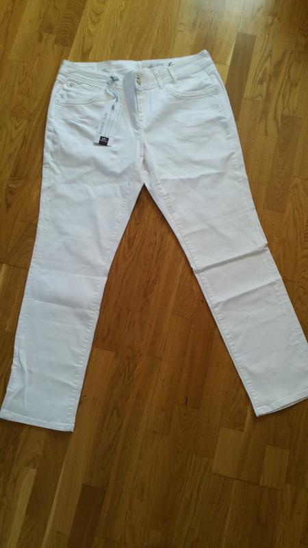 Стрейчеві джинси білого кольору для пишною леді з красивими формами виміри ПІТ 47 тягнеться до 52 см побіди 55 потянеться ДІ-пліч 104 ДІ крок 78 висота посадки спереду 25.5 висота посадки ззаду 34.5 ширина серед штанини 22 низ 19.5 брендові
