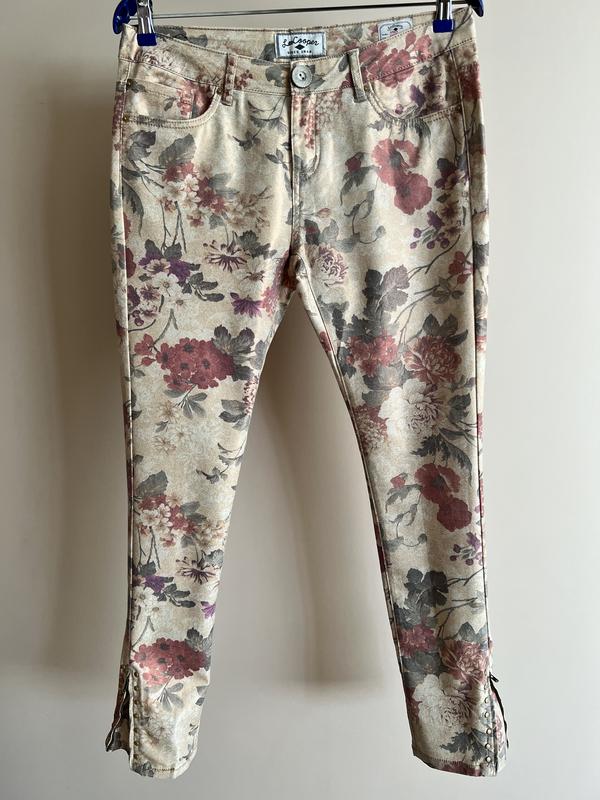 Состояние новых, оригинал. Джинсы покрыты блестящим напылением, фото не передает. Длина 101 см., полуобхват талии 42 см., полуобхват бедер 51 см. Выглядят очень стильно и переливаются на солнце. Ткань тонкая как раз на весну/лето.