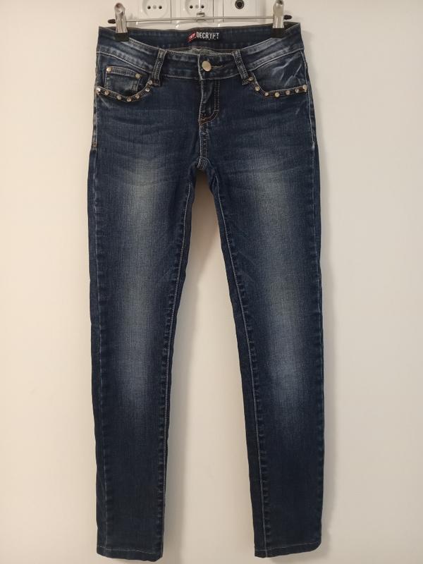 Синие стреч джинсы с камнями на карманах. Бирка с размером и составом отсутствует. Предположительно подойдут на размер XS-S-M,точнее орментируйтесь на замеры,джинс немного стрейч и хорошо тянется: длина 94/72 ПОТ 35,тянется до 39 ПОБ 41,тянется до 45 ПО вверху ноги 23,тянется до 27 ПО в колене 16,тянется до 19 ПО внизу 13,тянется до 15 высота посадки 19/30. Самая точная цветопередача на 1,2,3 фото. Состав не указан,предположительно 98%хлопок/2%эластан - джинс средней плотности,немного стрейч,весна-осень. Состояние очень хорошее. Высылаю после полной оплаты. Автоматические заказы принимаются. Інформацію про акції/знижки/розпродаж можна прочитати у розділі "Про мене".