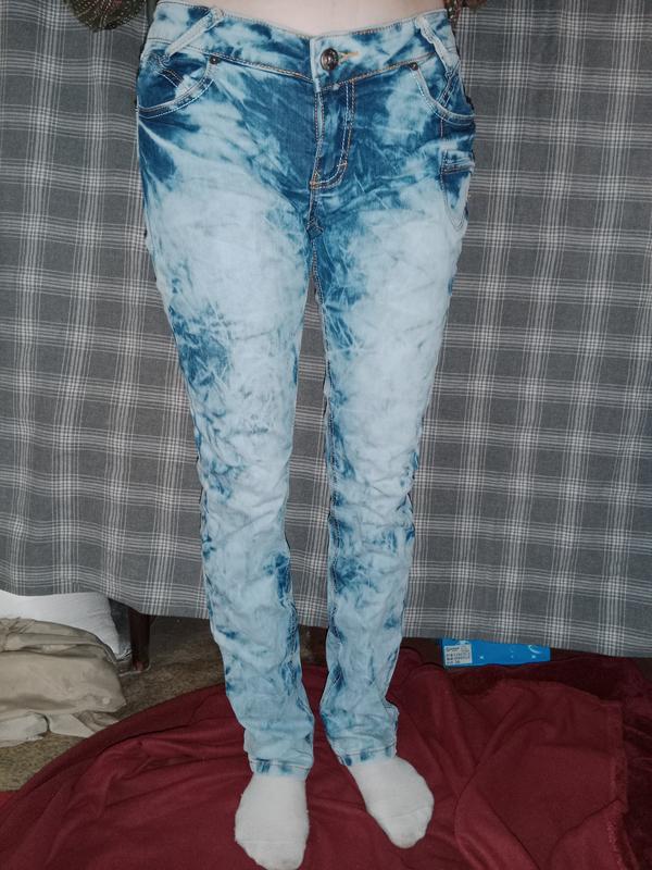 Джинсы с низкой посадкой, прямой пошив штанины, где-то на рост 170 см