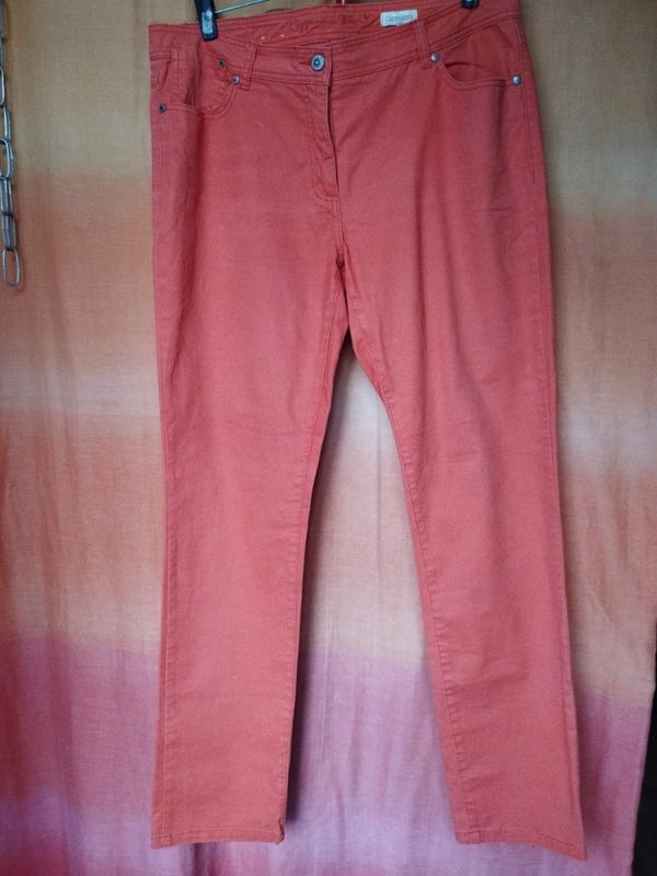 Джинсы в идеальном состоянии.Колир таракотовый,размер 52.Пояс 92, бедра 110, крок 78.