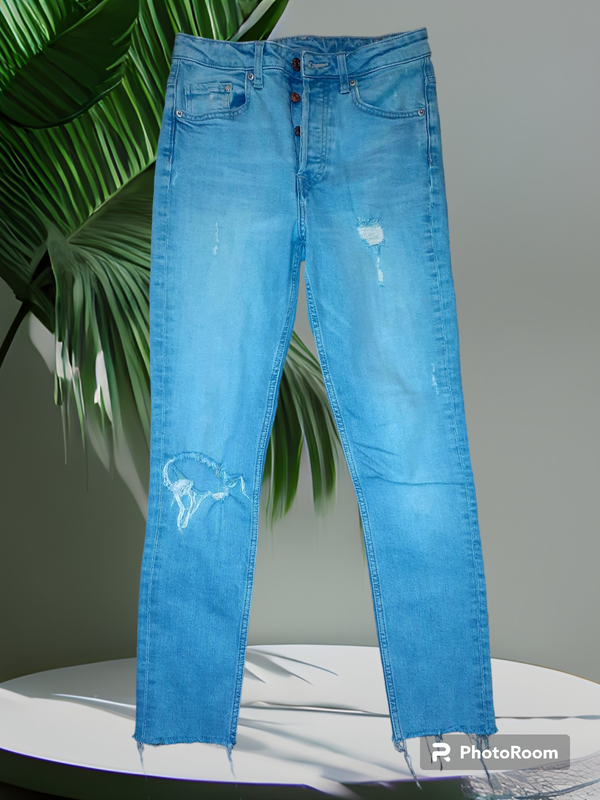 Свет голубые летние джинсы от бренда H&M, размер 28М, все рваности фабричные, низ необработанный, тянутся. Очень красиво садятся по фигуре. Качество супер, продаю, потому что поправилось и они лежат в шкафу поэтому цена символична💛💙
