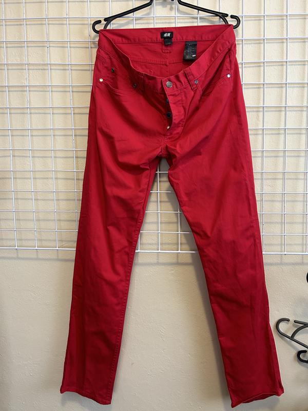 Н&М Червоні джинси сток нові з лейбою Довжина- 111см Пів обхват бедер- 48 до 56 см Пів обхват талії-42 до 46 см Посадка спереді - 24 см