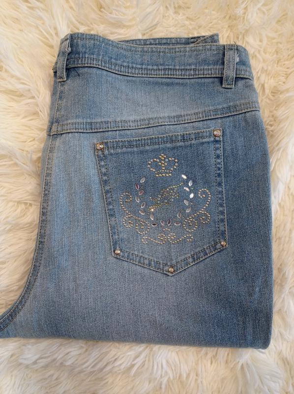 Джинсы со стразами Германия размер 42 глубокая посадка тягнуться талия 41 бедра 47 глубина посадки спереди 26 глубина посадки сзади 38 длина штанины по боку 95 длина штанины по внутреннему шву 72 ширина штанини внизу 18.5