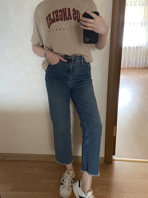 Джинсы синего цвета, чуточку укороченные размер S средняя посадка длина штанин 60см торг