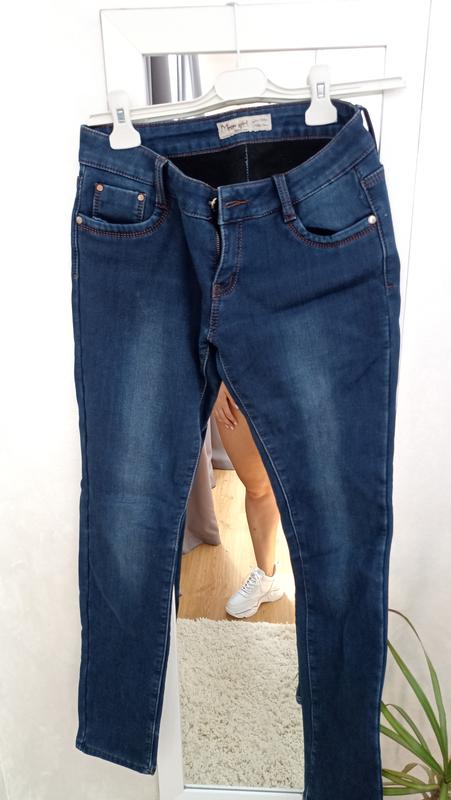 Утепленные стрейчевые джинсы очень красивого синего цвета.