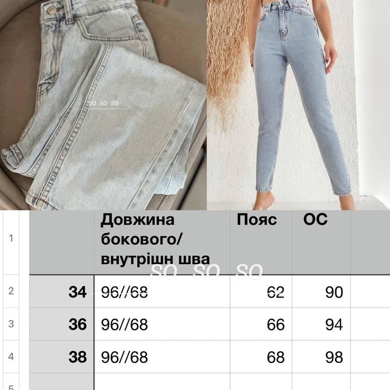 -Джинси МОМ -Модель: 6751 -Производство Турция -Цина: 730 грн -Размер: EUR 34, 36, 38 -Тканина: джинс (100% cotton) не тягнуться - Цвет: голубой