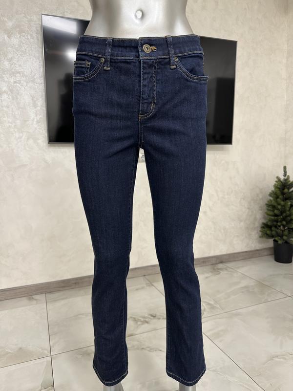 Классные темно-синие джинсы на средней посадке. Состояние идеальное. Размер указан 6, подойдут на М. Замеры: длина 96см, шаг 69см, посадка 27см, пот 38см, поб 45см, ширина штанины внизу 18см.