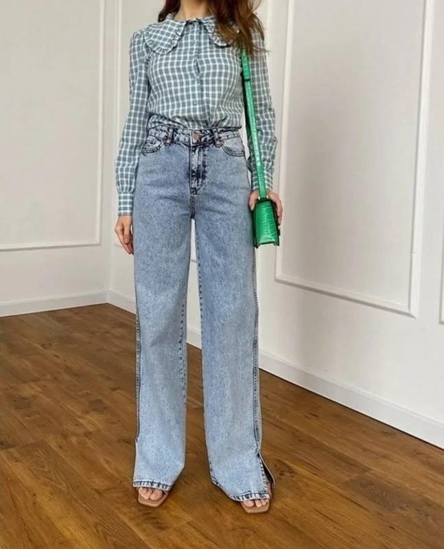 Широкие джинсы widое leg с высокой талией и небольшими разрезами сбоку. Классическая модель с двумя карманами спереди и накладными карманами сзади. C wide leg джинсами легко можно собрать расслабленный и комфортный образ в стиле ретро. Произведено в Турции. Состав: 100% коттон