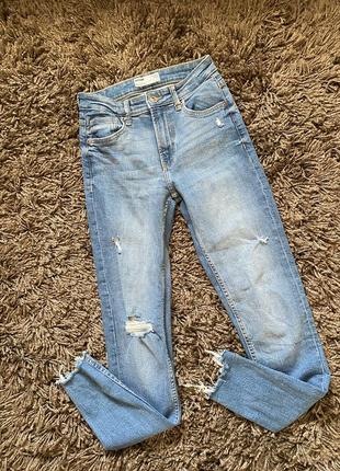 Очень крутые джинсы от Bershka, размер 34 EU Супер качество, состояние отличное! Замеры: Посадка спереди – 24 см; Полуобхват талии –30 см; Длина по внутрь шва/снаружи -68/92 см; Полуобхват бедра-41 см (тянутся).