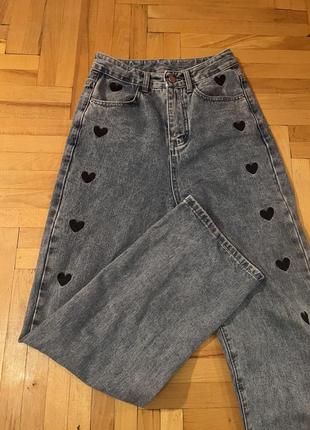 Стильные джинсы, прямые, с вышивкой сердечки) Размер с - 26