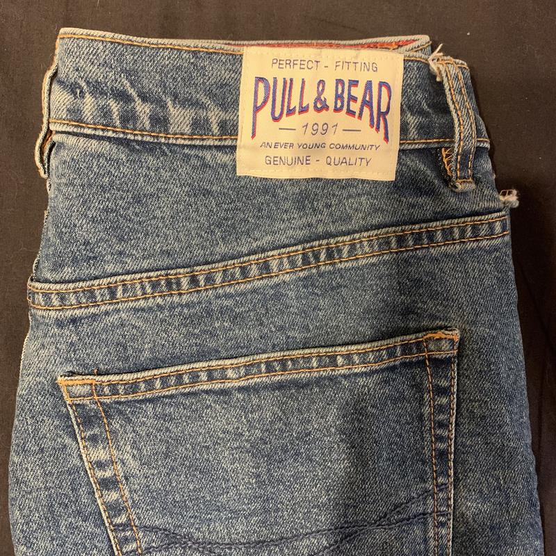 Джинсы красивого синего цвета, прямые, с необработанным низом, состояние хорошее. 38рр Талия 35 Бедра 47 Длина 94