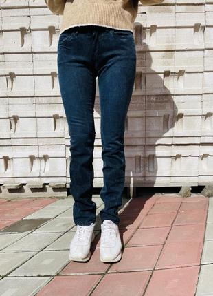 Джинси завужені, з низькою посадкою, темно-синього кольру, під «варенку». Річ нова, з біркою. Зріст моделі 170 см.