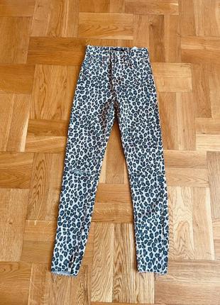 Джинси в леопардовий принт, вузькі, висока посадка, розріз на коліні. Нові, з біркою. На бірці 32 розмір
