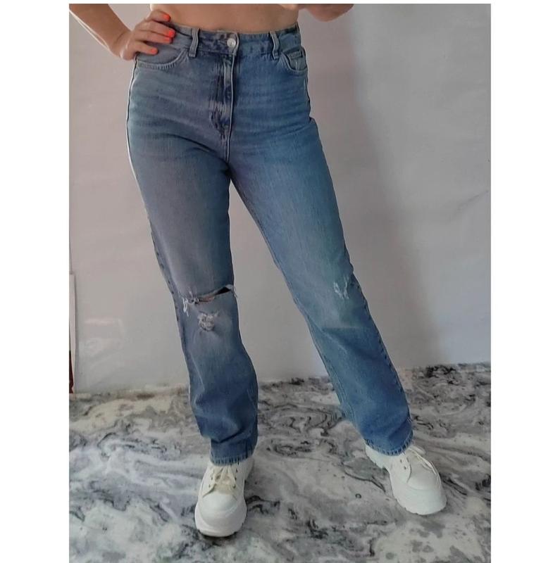 Очень классные и качественные джинсы с высокой посадкой, размер Л, тянется немного, комфортные. Пояс 76-80см,бедра 96см в спокойном состоянии тянется до 100см,длина 106см,шаг 77см Цена 455грн