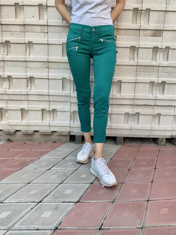 Джинсы зеленого цвета, средней посадки, узкие, немного тянутся. Вещь новая, с биркой. Рост модели 170см. Европейский размер 38.