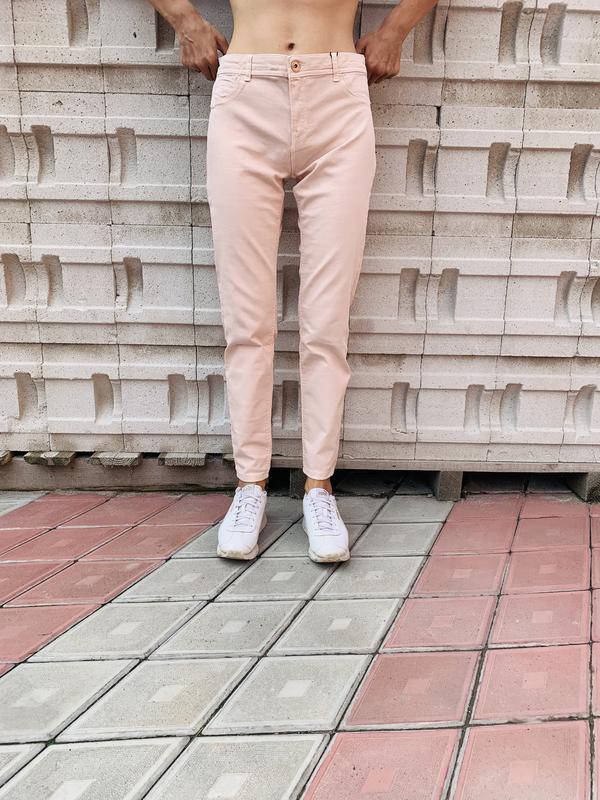 Джинсы зауженные, светло-розовые(персикового) цвета, карманы сзади. Рост модели 170 см. Вещь новая, с биркой. Европейский размер 38.