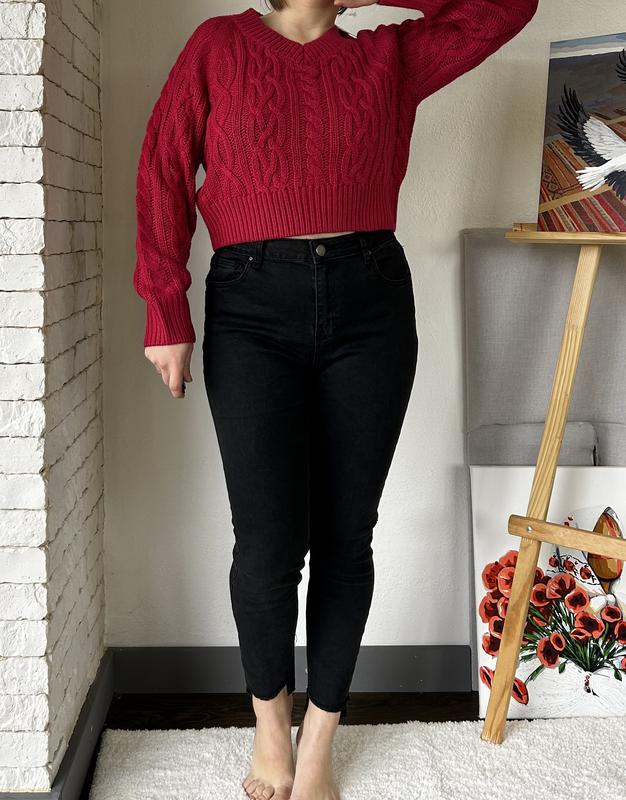 Джинсы однотонные, высокая посадка, внизу обрезаны с передней стороны, очень красиво смотрятся 🖤 Fashion Union 77% хлопок, 22% полиестер, 2% элестан Размер: eur 40, u9 12 ( M, небольшая L) Пояс 39 см, бедра 46 см, длина 96 см, шаг 68 см, высота 36 см Цена: 400 грн